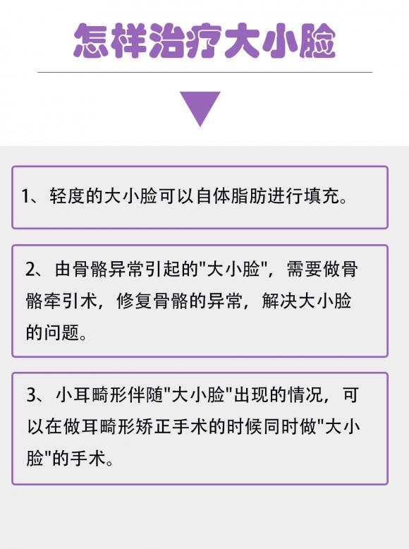 大小脸形成的原因有很多,不会随年龄的增长而加重,但是也不会减轻。"大小脸"矫正修复手术,通常可以与耳朵再造同时完成,这样可以节省治疗时间和费用。
